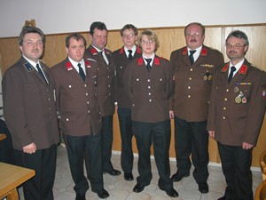 ![]() v.l.n.r. Kdt. Zehndorfer R., V Lachmann J., Ehrenkommandant Reiser L. und Kdt.Stv. Schoderböck T. |