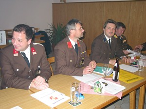 Bürgermeister Haslinger nimmt die Angelobung von Kommandant und Kommandantstv. vor und übergibt den Vorsitz an den neuen Kommanden Reinhard Zehndorfer. Der bisherige Verwalter Josef Lachmann, Verwaltungsmeister Josef Staudenmayer und Verwaltungsgehilfe Wolfgang Hess-Vigne wurden mittels Handzeichens für weitere 5 Jahre wiedergewählt. Die Vergabe der weiteren Funktionen wird in einer eigenen Versammlung erfolgen. Der bisherige Kommandant Leopold Reiser wird einstimmig zum Ehrenkommandant ernannt und für seine verdienstvolle Arbeit für die FF-Inzersdorf wurde ihm mit sehr heftigem Applaus und „standing ovations“ aller Anwesende gedankt.