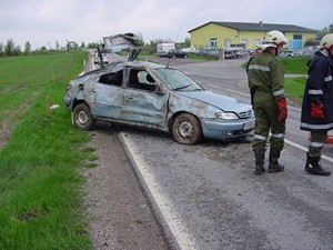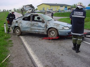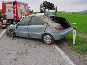 auf die linke Seite in ein Feld. Das Auto überschlug sich Mehrmals und